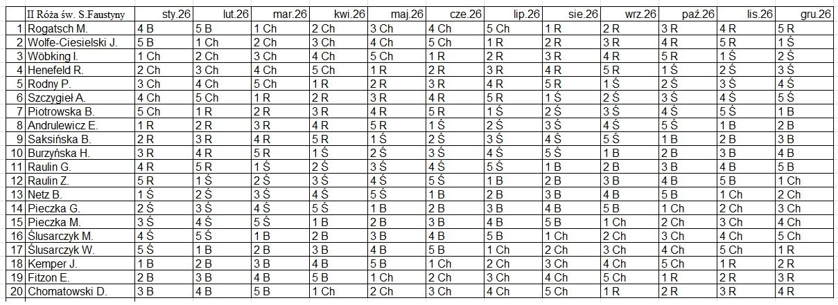Msza święta w intencji członków Róż Różańcowych (oraz za zmarłych z Róż) w pierwszą niedzielę miesiąca.